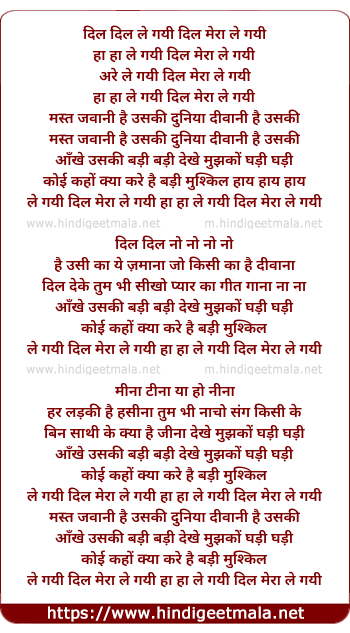 Lyrics of Dil Le Gayi, Mast Jawani Hai Uski - दिल ले गयी, मस्त जवानी है उसकी