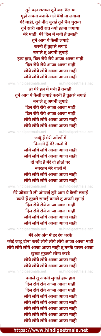 Lyrics of Dil Loye Loye Aaja Mahi - दिल लोये लोये आजा माही