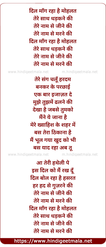 Lyrics of Dil Mang Raha Hai - दिल मांग रहा है