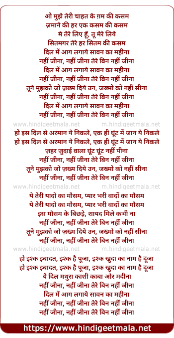 nahi jina, nahi jina tere bin nahi jina