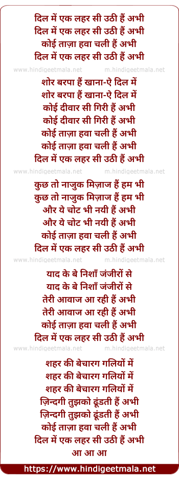 Lyrics of Dil Me Ek Lehar Si Uthi Hai - दिल में एक लहर सी उठी हैं अभी