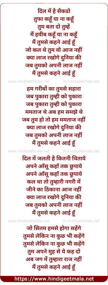 Lyrics of Dil Me Hai Saikado Toofan - दिल में है सैकडो तूफ़ान