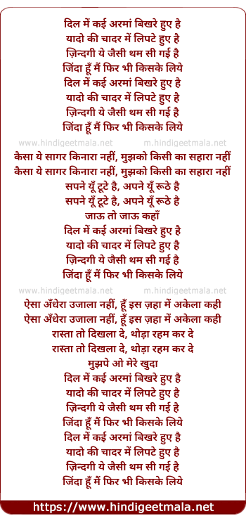 zinda hu main phir bhi kiske liye