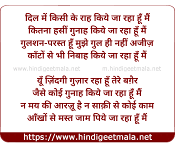 Lyrics of Dil Me Kisee Ke Raah Kiye Ja Raha Hu Mai - दिल में किसी के राह किये जा रहा हूँ मैं