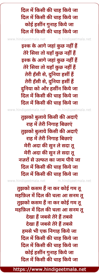 Lyrics of Dil Me Kisi Ki Chah Kiye Ja - दिल में किसी की चाह किये जा