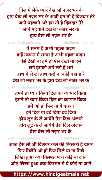 Lyrics of Dil Me Leke Pyare - दिल मे लेके प्यारे