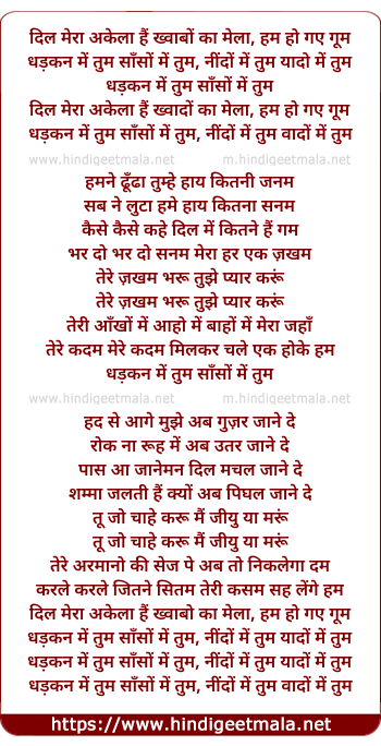 Lyrics of Dil Mera Akela Hai Khawabon Ka Mela - दिल मेरा अकेला हैं ख्वाबो का मेला
