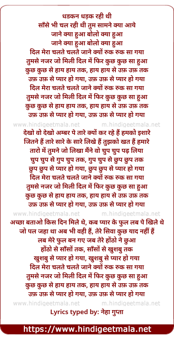 Lyrics of Dil Mera Chalate Chalate - दिल मेरा चलते चलते