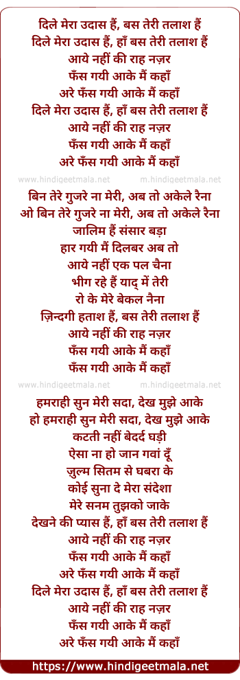 Lyrics of Dil Mera Udaas Hai - दिल मेरा उदास हैं