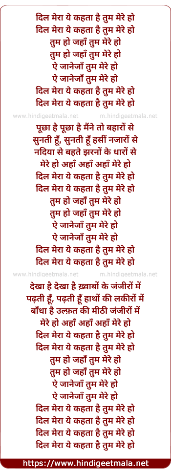 Lyrics of Dil Mera Ye Kehta Hai Tum Mere Ho - दिल मेरा ये कहता है तुम मेरे हो
