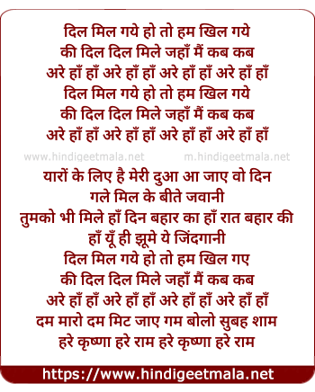 Lyrics of Dil Mil Gaye Ho To Hum Khil Gaye - दिल मिल गये हो तो हम खिल गये
