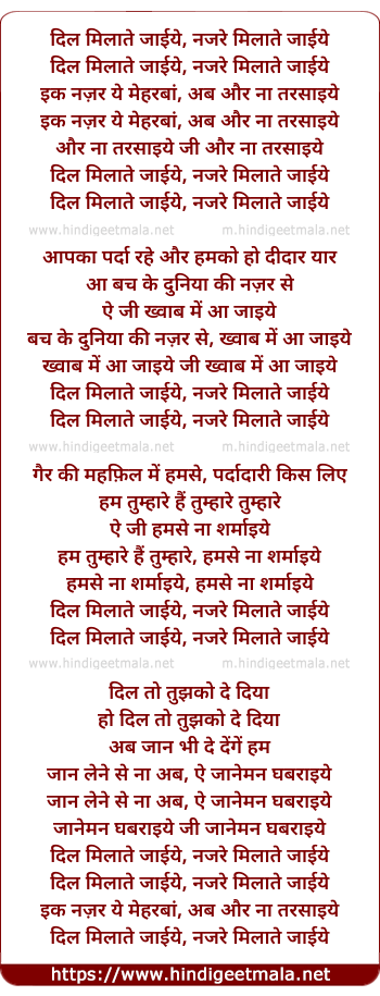 Lyrics of Dil Milate Jayiye Nazare Milate Jayiye - दिल मिलाते जाईये नजरे मिलाते जाईये