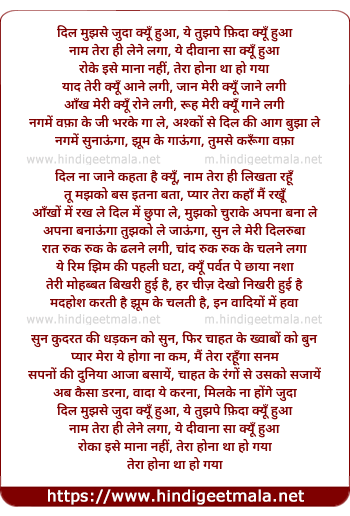 Lyrics of Dil Mujhse Juda Kyu Hua - दिल मुझसे जुदा क्यूँ हुआ