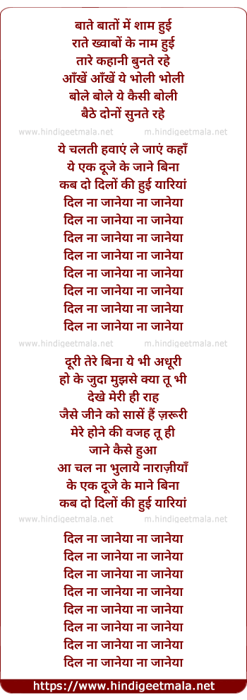Lyrics of Dil Naa Jaaneya - दिल ना जानेया