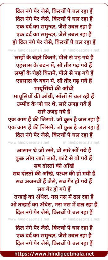 Dil Nange Pair Jaise - दिल नंगे पैर जैसे, किरचों पे चल रहा हैं