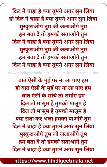 Lyrics of Dil Ne Chaha Hai Kya - दिल ने चाहा है क्या