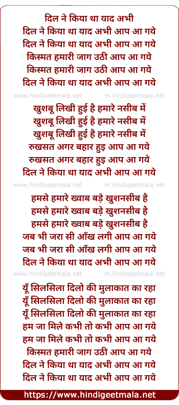 Lyrics of Dil Ne Kiya Thaa Yaad - दिल ने किया था याद