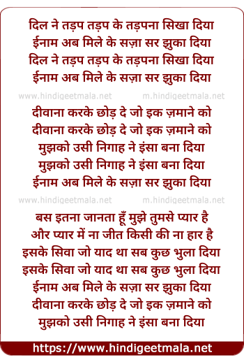 Lyrics of Dil Ne Tadap Tadap Ke Tadpana Sikha Diya - दिल ने तड़प तड़प के तड़पना सिखा दिया