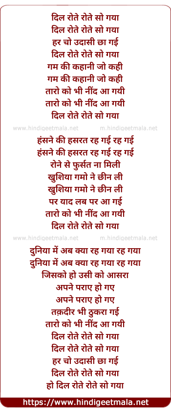 Lyrics of Dil Rote Rote So Gaya - दिल रोते रोते सो गया