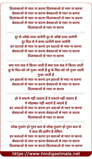 Lyrics of Dilrubao Se Pyar Naa Karna - दिलरुबाओ से प्यार ना करना