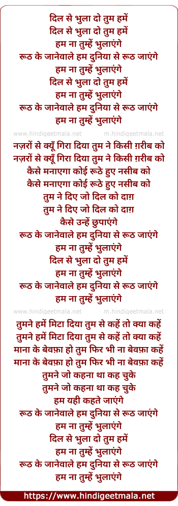 Lyrics of Dil Se Bhula Do Tum Hame - दिल से भुला दो तुम हमें