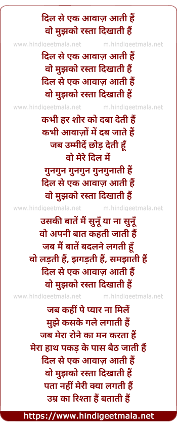 Lyrics of Dil Se Nikal Awaz Aati Hai - दिल से एक आवाज़ आती हैं