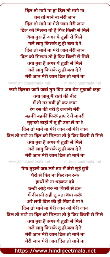 Lyrics of Dil To Maane Na - दिल तो माने ना