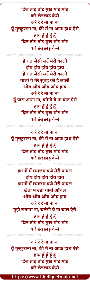Lyrics of Dil Tod Tod Mukh Mod Mod - दिल तोड़ तोड़ मुख मोड़ मोड़