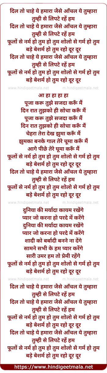 Lyrics of Dil Toh Chaahe Hamaara Jaise - दिल तो चाहे ये हमारा जैसे