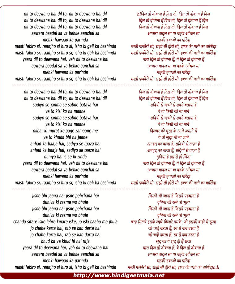 Lyrics of Dil Toh Deewana Hai (Title Song) - दिल तो दीवाना हैं दिल तो, दिल तो दीवाना हैं दिल