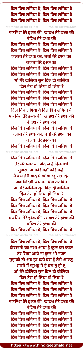 Lyrics of Dil Vich Lagya (Remix) - दिल विच लगिया वे, दिल विच लगिया वे