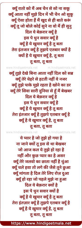 kyu hai ye khumar kyu hai, tu bataa