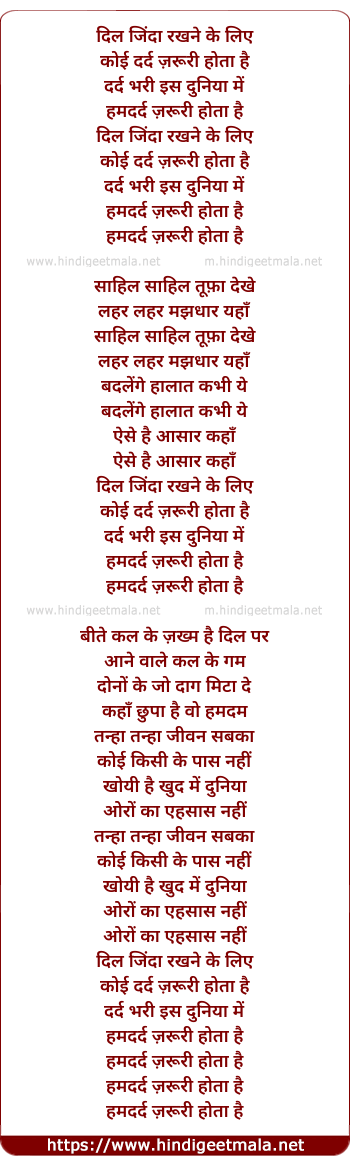 Lyrics of Dil Zinda Rakhne Ke Liye - दिल जिंदा रखने के लिए