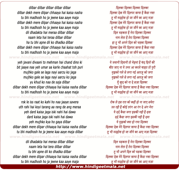 Comments for lyrics of song "Dilbar Dekh Mere Dilpar"