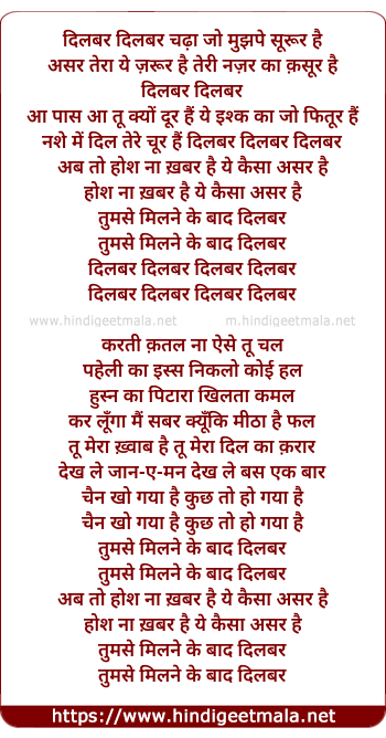 dilbar dilbar chadha jo mujh pe surur hai