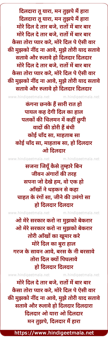 dildaara tu yaara, man tujhpe hain haara
