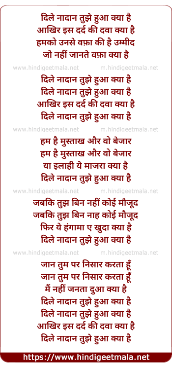 Lyrics of Dile Nadan Tujhe Hua Kya Hai - दिले नादान तुझे हुआ क्या है