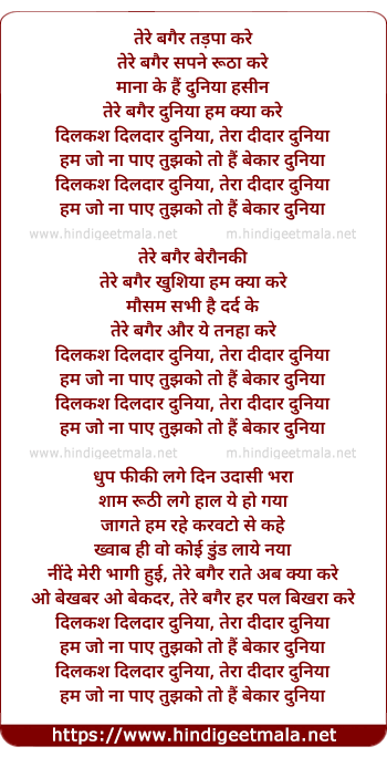 Lyrics of Dilkash Dildaar Duniya (Remix) - तेरे बगैर तड़पा करे