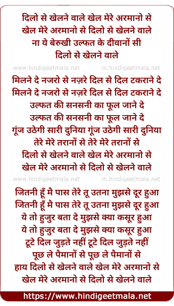 Lyrics of Dilon Se Khelne Wale, Khel Mere Armaano Se - दिलो से खेलने वाले, खेल मेरे अरमानो से