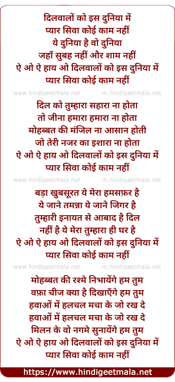 Lyrics of Dil Walo Ko Is Duniya Me - दिलवालों को इस दुनिया में