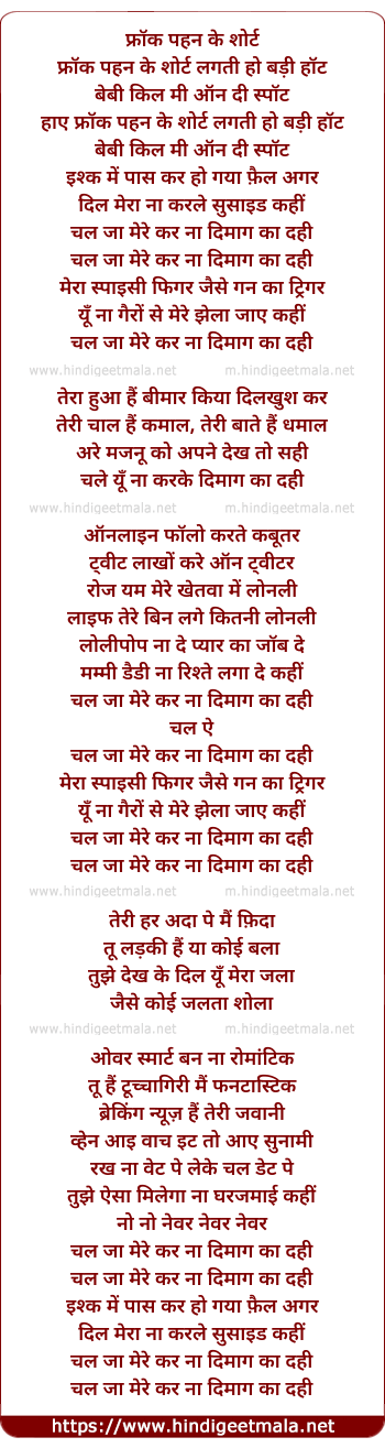 Lyrics of Dimagh Ka Dahi - दिमाग का दही