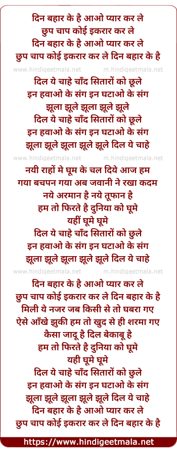 Lyrics of Din Bahaar Ke Hai Aao Pyar Kar Le - दिन बहार के है आओ प्यार कर ले