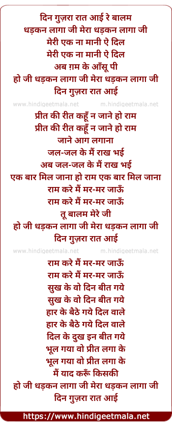 Lyrics of Din Guzra Raat Aayi - दिन गुज़रा रात आई रे बालम