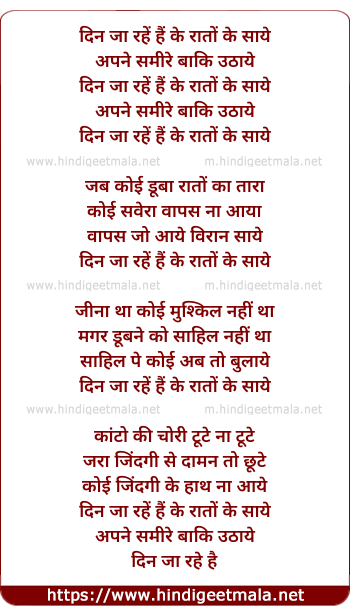 Lyrics of Din Ja Rahe Hai, Ke Raato Ke Saye - दिन जा रहें हैं के रातों के साये