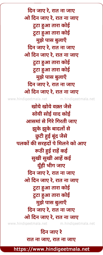 Lyrics of Din Jaaye Re - दिन जाए रे, रात ना जाए