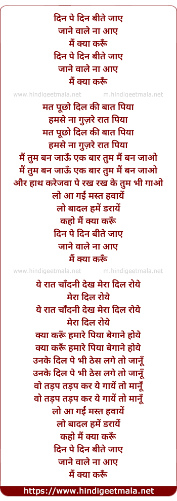 Poetic Translation - Lyrics of Din Pe Din Beete Jaye - दिन पे दिन बीते जाए