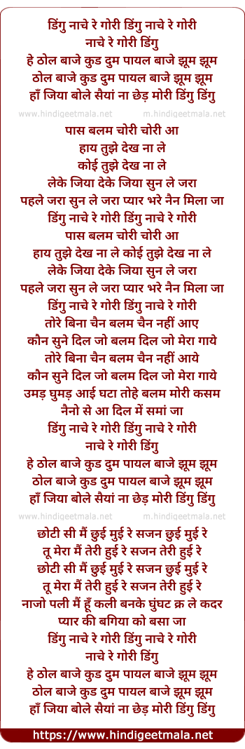 Lyrics of Dingu Nache Re Gori Dingu - डिंगु नाचे रे गोरी डिंगु