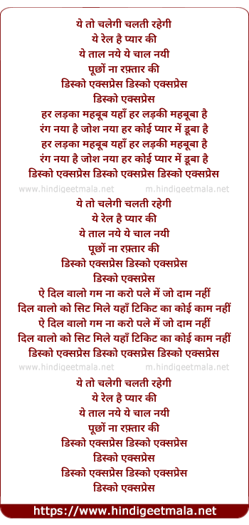 Poetic Translation - Lyrics of Disco Express - ये तो चलेगी चलती रहेगी