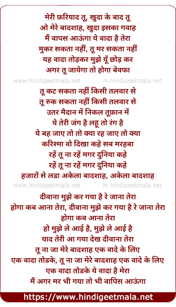 ek vada todake, too naa ja mere badshah ek vade ke liye