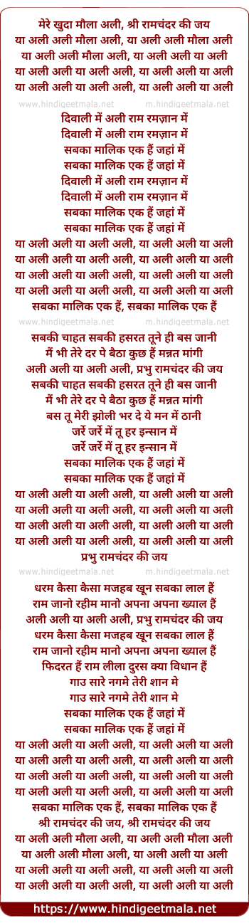 mere khuda maula ali, shri ramchandar ki jai